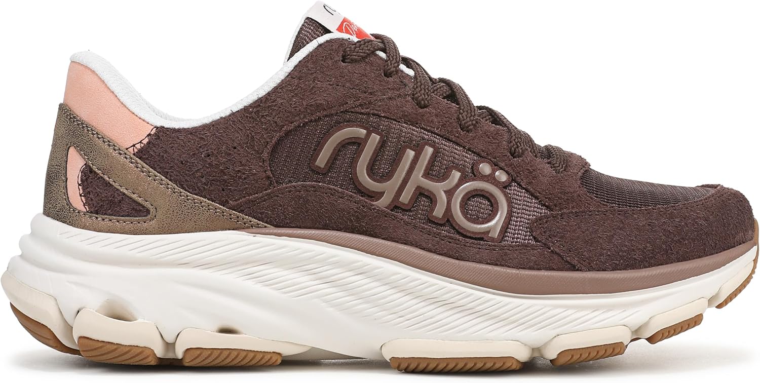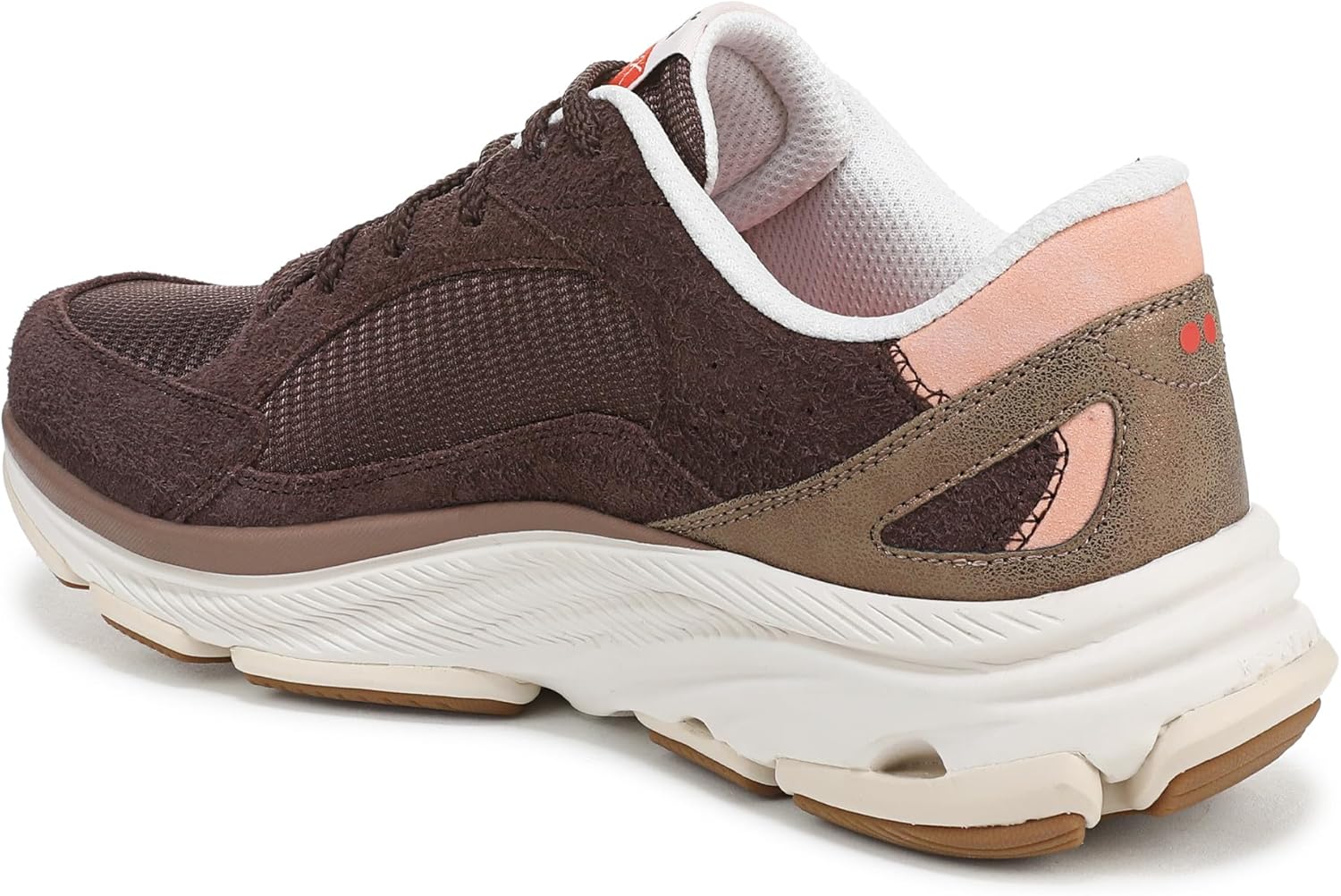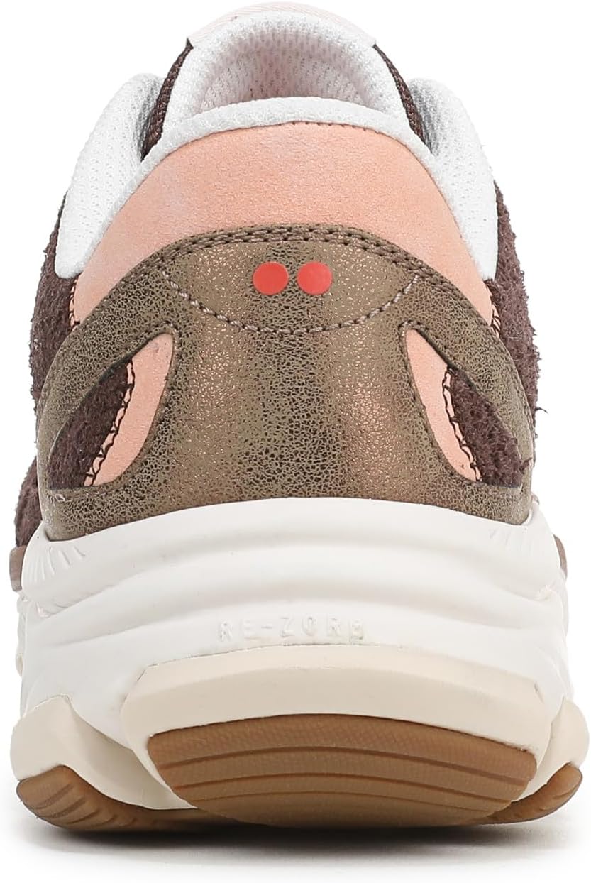 Get cushioning and shock absorption to the max in this retro-inspired version of our best-selling Devotion X womens walking sneaker. BEST FOR: High-performance fitness walking. APMA APPROVED: Awarded the American Podiatric Medical Association Seal of Acceptance for products that promote good foot health. PERFORMANCE TESTED: Proven in lab testing to provide low deceleration, braking, and impact forces + Very high perceived cushioning. INNOVATIVE TECH: Full-length RE-ZORB® responsive cushioning for shock absorption + impact protection, plus lightweight RE-ZORB® LITE pads in the forefoot and heel. MATERIALS: Retro-inspired styling with breathable air mesh + Leather and synthetic overlays + Padded tongue and heel collar. CLOSURE: Secure lace-up front. INSOLE: Anatomical heel with extra arch support + heel support and partially recycled EVA. MIDSOLE: Lightweight EVA for soft cushioning + Full-length RE-ZORB® responsive cushioning. OUTSOLE: Durable two-piece rubber sole for grip + Built-in compression channels for shock absorption. WEIGHT: 278 g/9.8 oz per shoe. HEEL-TO-TOE DROP: 10 mm.