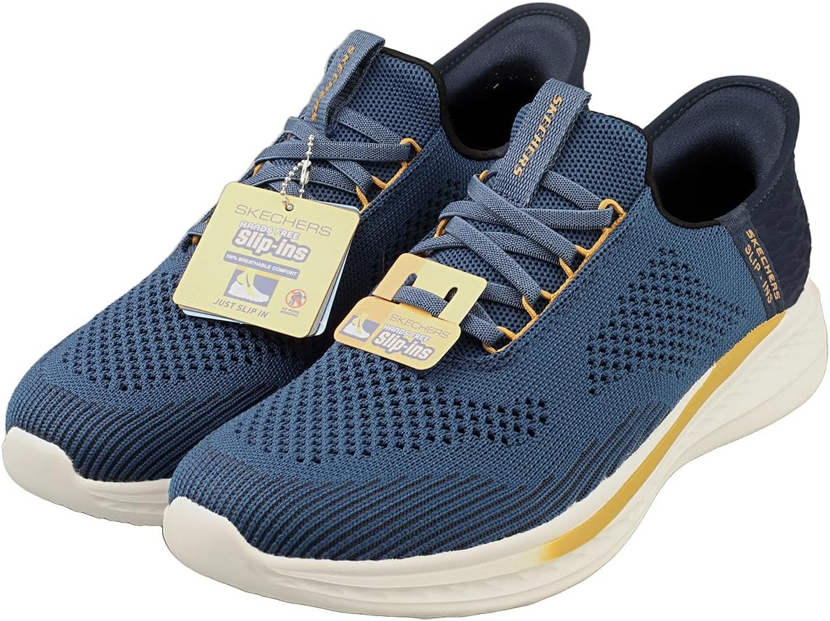 Experience ultimate convenience and comfort with these innovative slip on shoes for men. The Slade Quinto features a breathable engineered knit upper with stretch laces and a flexible traction outsole. These mens slip on sneakers combine style with functionality, featuring Air-Cooled Memory Foam cushioning, Goga Mat arch support, and a Heel Pillow design that keeps your foot secure. Perfect for those seeking comfortable, vegan-friendly casual footwear that’s easy to maintain.
