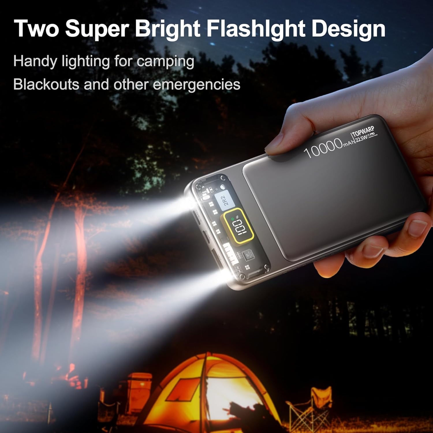 10000mAh Power Bank,Slim Portable Charger,PD 22.5W Fast Charging 5V/3A USB-C Output,Battery Pack with Emergency Lighting,Compatible Android Phones and Most Electronic Devices