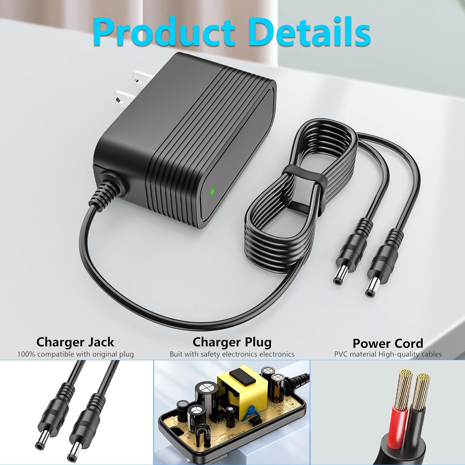 The Power Charger features a durable and long-lasting design, and built-in safety features protect against overloading, short circuits and overheating. Eliminates any worries about damaging the device while charging.Charger cord adoption of high quality copper wire, low resistance, high strength and tensile resistance, cord shell was made of PVC material, strong and durable, excellent electrical performance.
