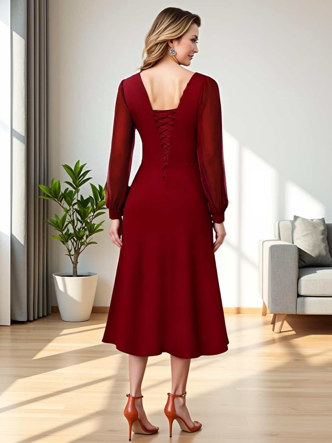 Be the first to review “Chiffon Tea Length Mother of The Bride Dress Long Sleeve Pleated Formal Evening Gown for Women HX015”