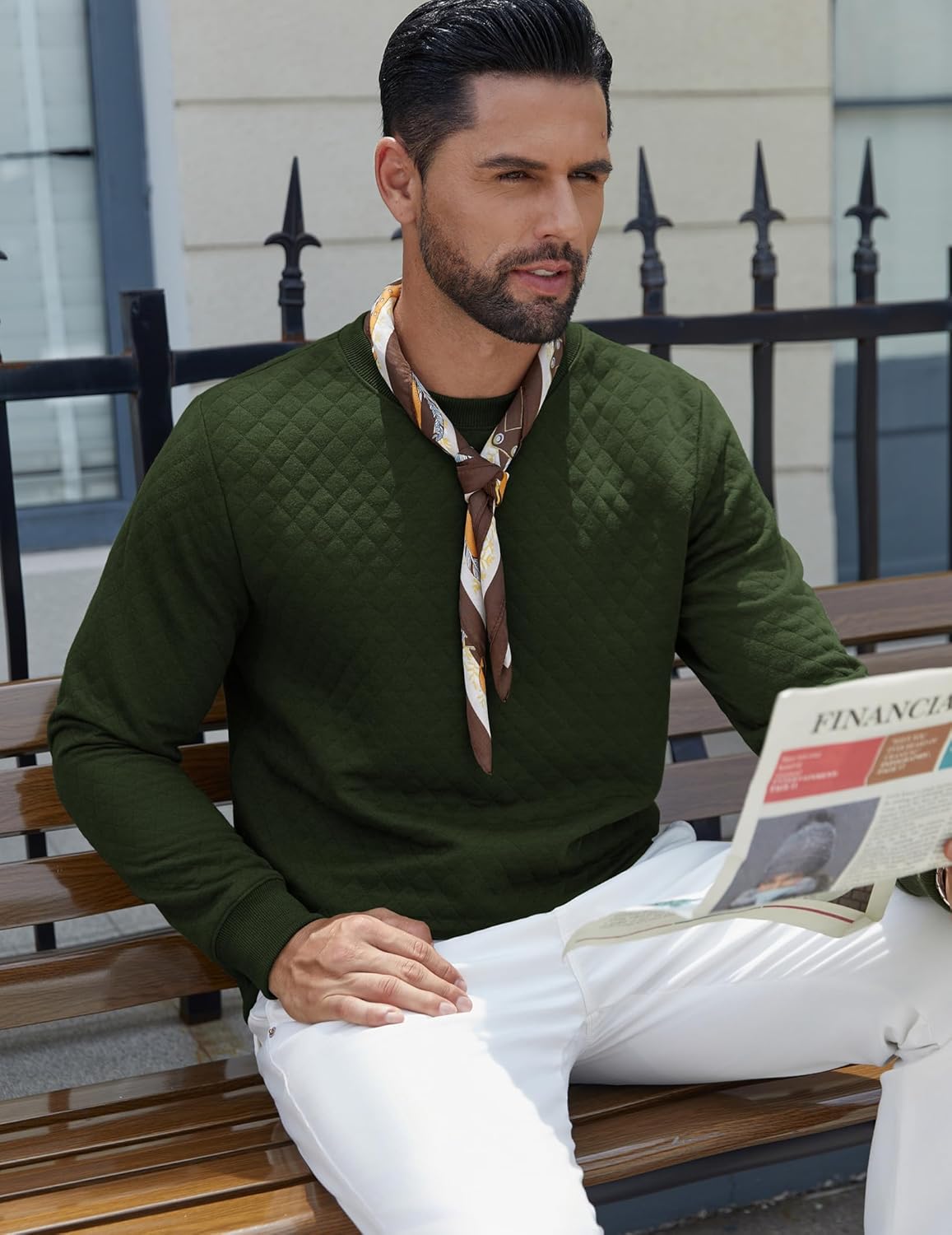 COOFANDY Men’s Crewneck Sweatshirt Argyle Sweater Diamond Quilted Pullover
