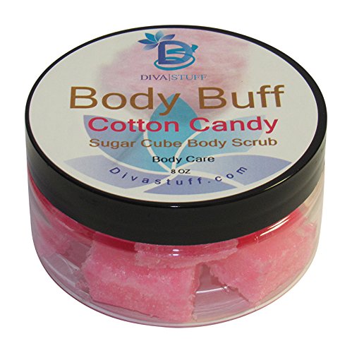 Diva Stuff Sugar Cube Body Buff Scrub, Exfoliates and Hydrates Skin, Pairs With Our Crepey Skin Cream – Cotton Candy, 8 oz (Made in the USA)