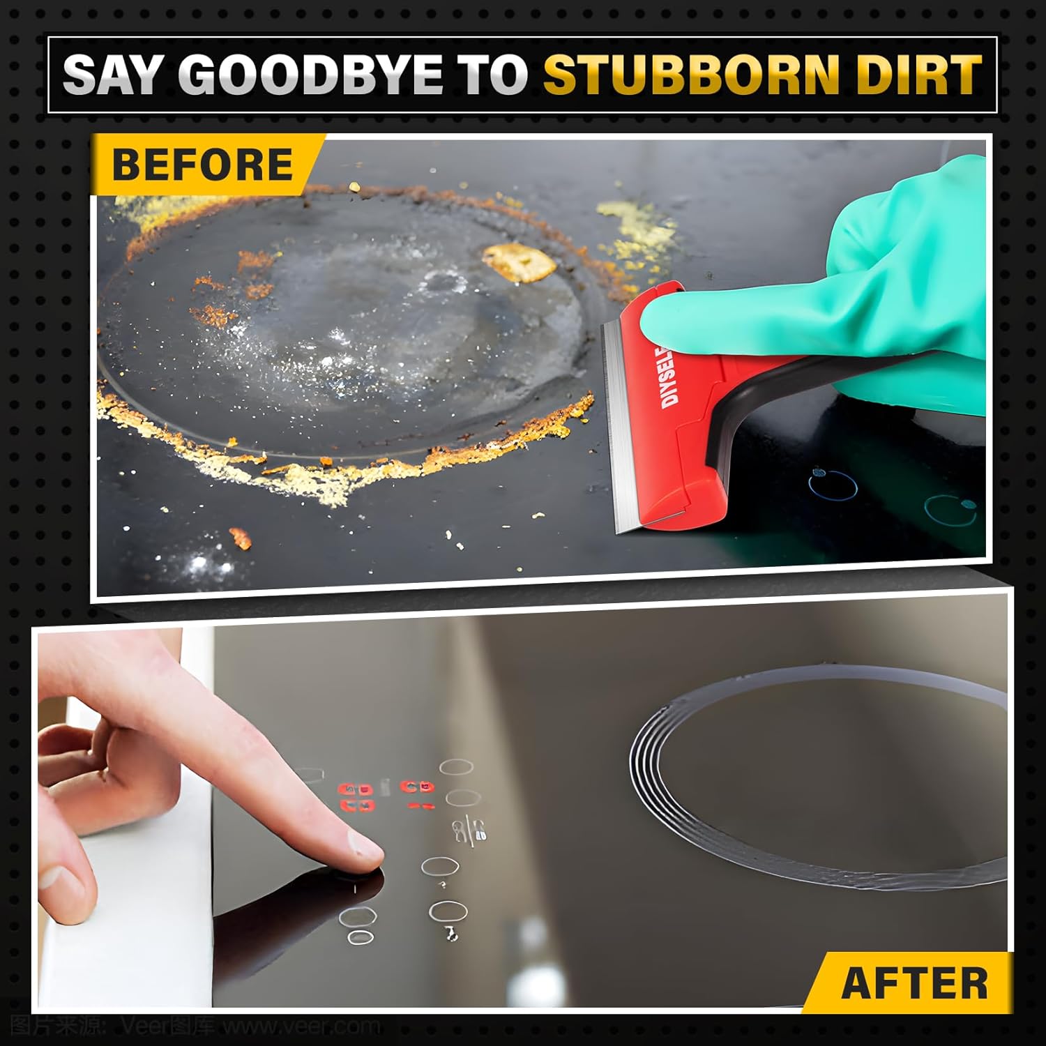 Effortless Efficiency: Experience cleaning like never before with the ingenious design of our metal scraper. The 4-inch-wide razor blade ensures swift and thorough cleaning, covering larger areas in less time. Coupled with its ergonomic handle, cleaning becomes a breeze, saving you time and effort with every swipe.