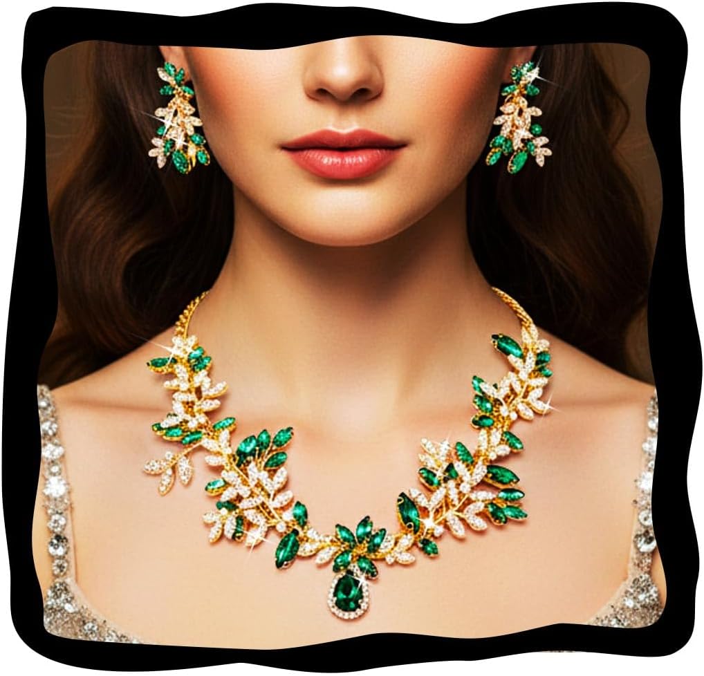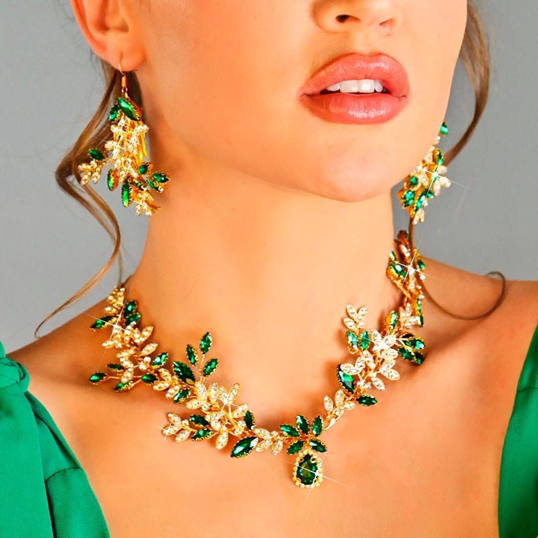 GORAIS Green Jewelry Sets Wedding Necklace and Earrings Set for Women Formal
