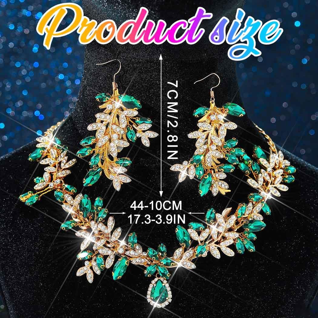 GORAIS Bridal Wedding Jewelry Set Gold Green Rhinestone Necklace and Earring Set for Brides and Women. Jewelry set is adjustable and has an elegant and exquihttps://poplooms.com/ design. Classy and elegant, is the perfect accents of gorgeous gown. Necklace set is dazzling in the sunlight and great for the brides, adding the sparkle to your big day. Rhinestone jewelry set is the nice piece for formal events and can add a touch to dresses.Jewelry sets make the outfit look more glamorous.