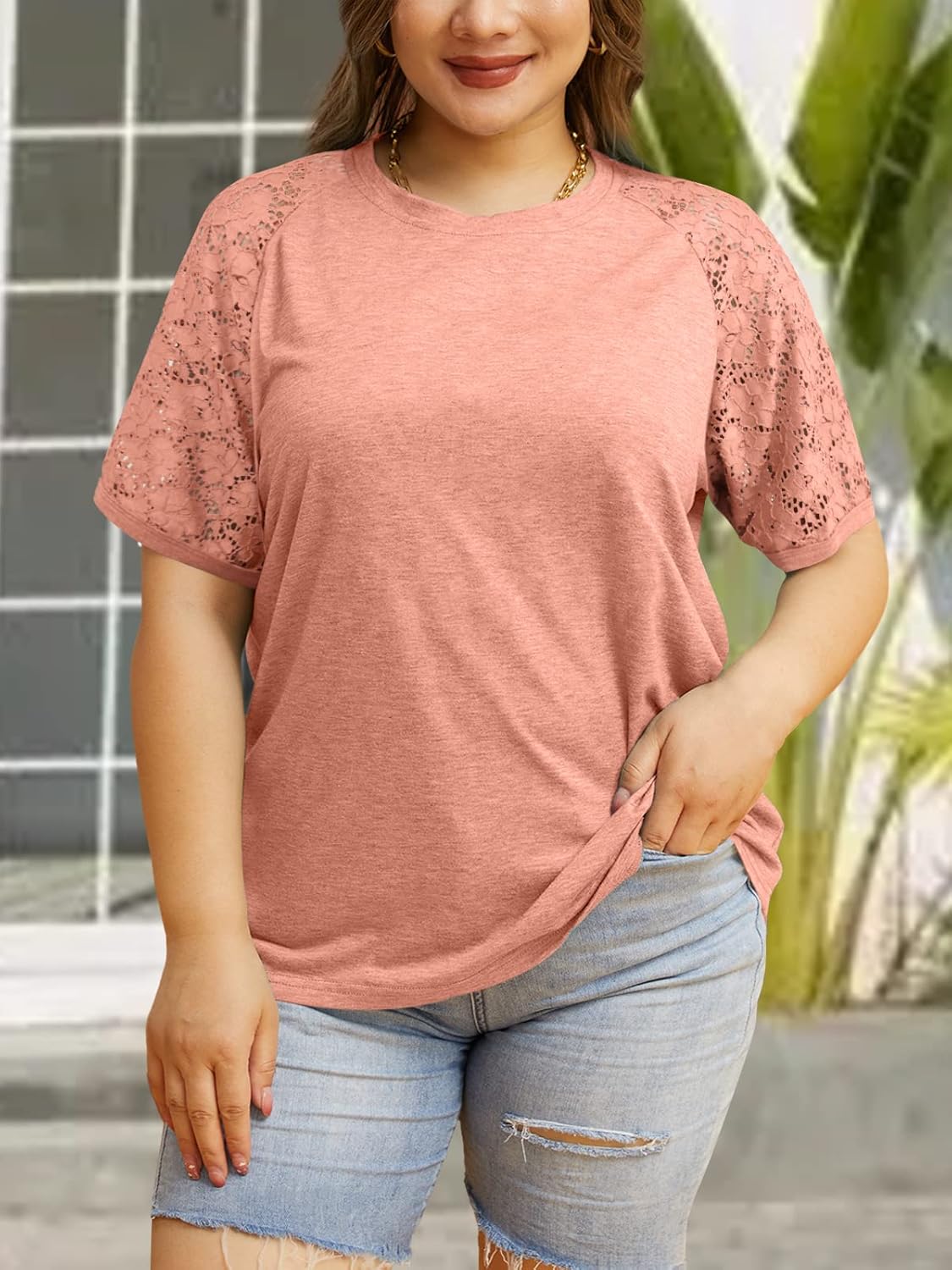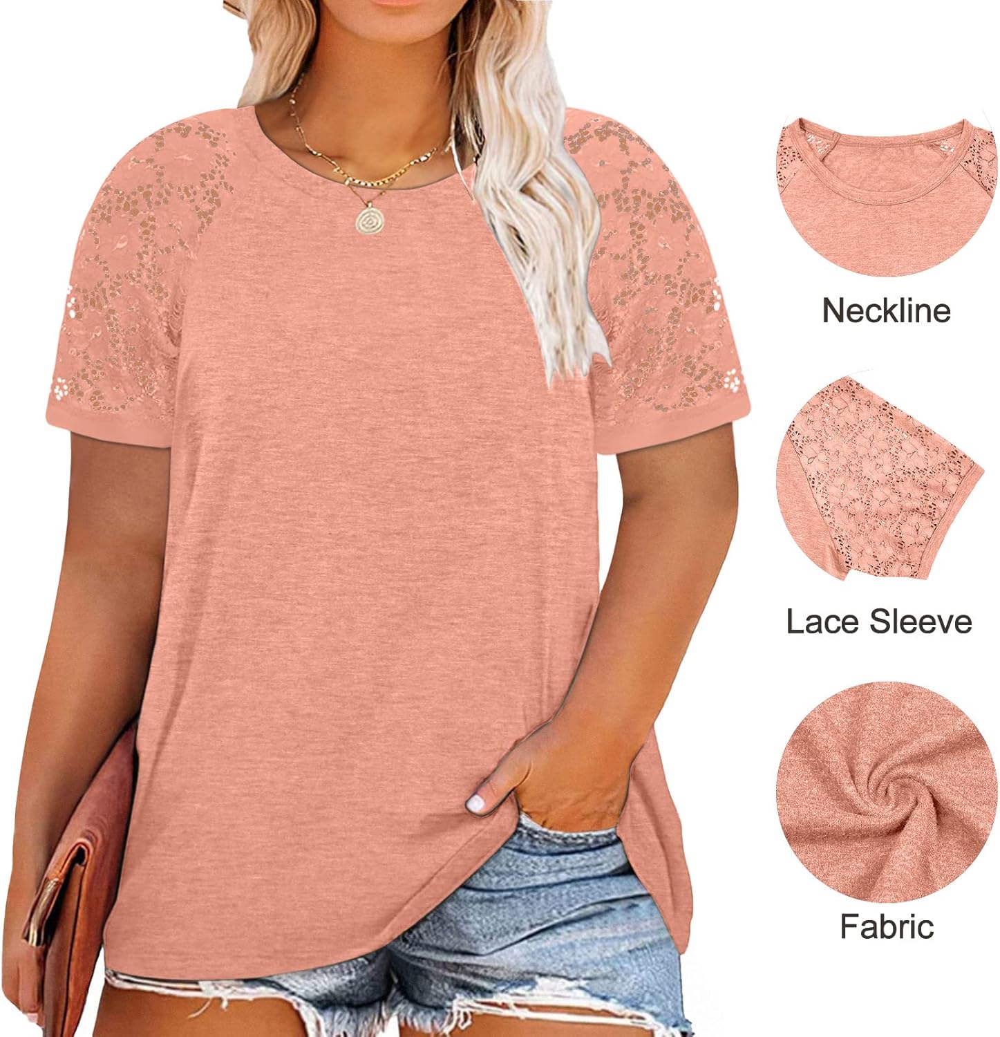 HDLTE Women Plus Size Tops Lace Sleeve Summer Oversized Shirts plus size summer topsplus size summer tops