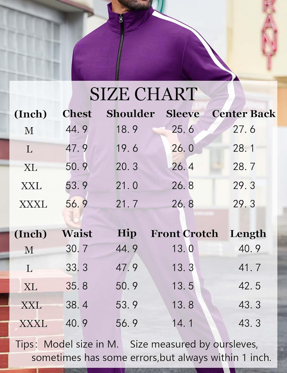 Size Chart–Zip Up Coat and Joggers.