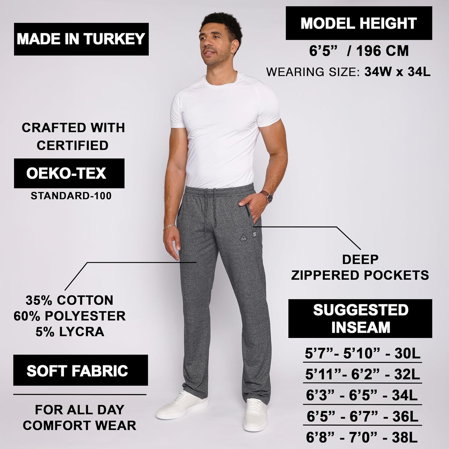 Men’s Sweatpants (Avg & Tall) Luxury Fit – Made in Turkey Athletic Sweat Pants for Tall Men with Zipper Pockets
