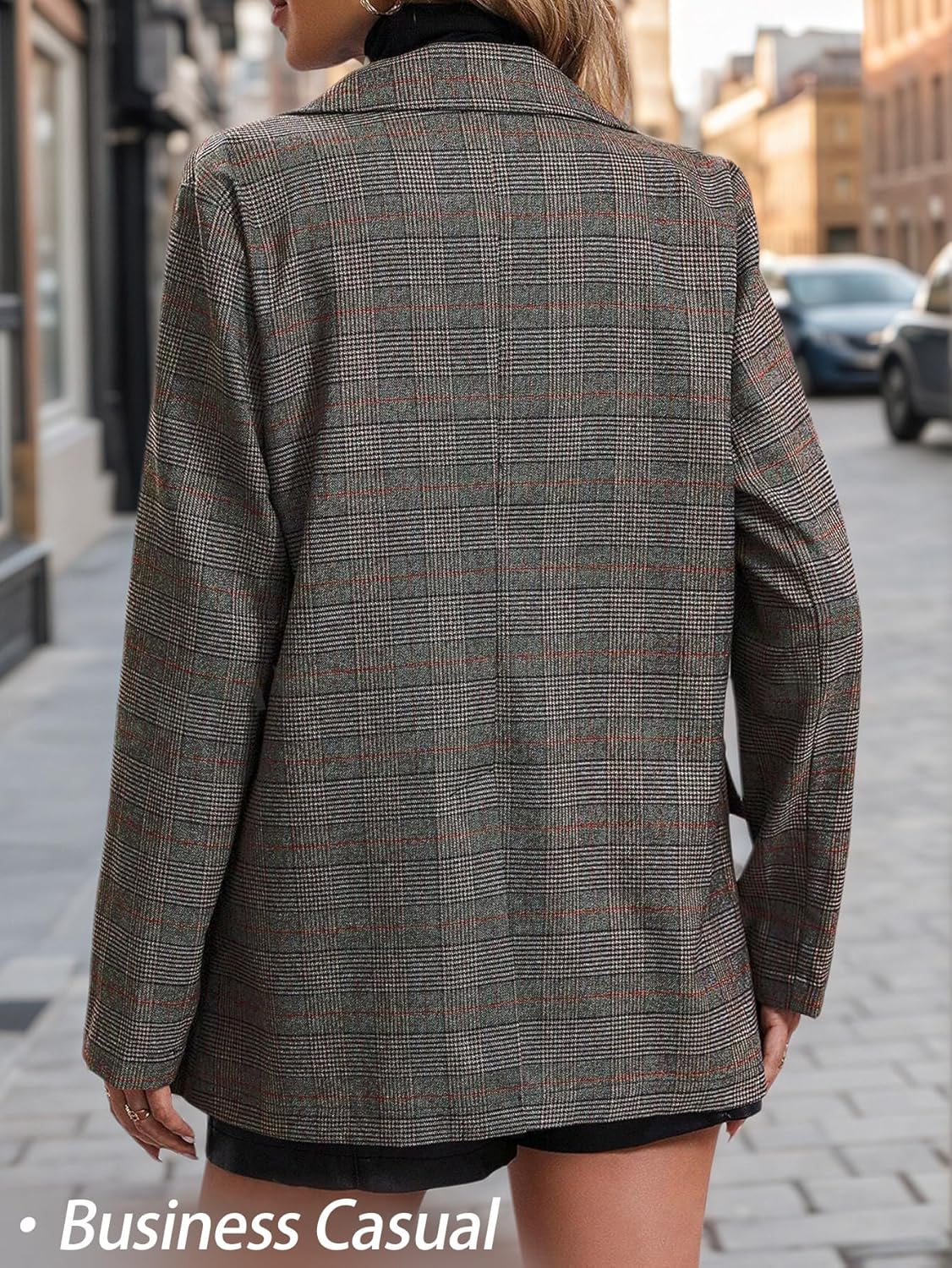 Versatile Dark Plaid Jacket for Women | Perfect for Work, Travel & Formal Events