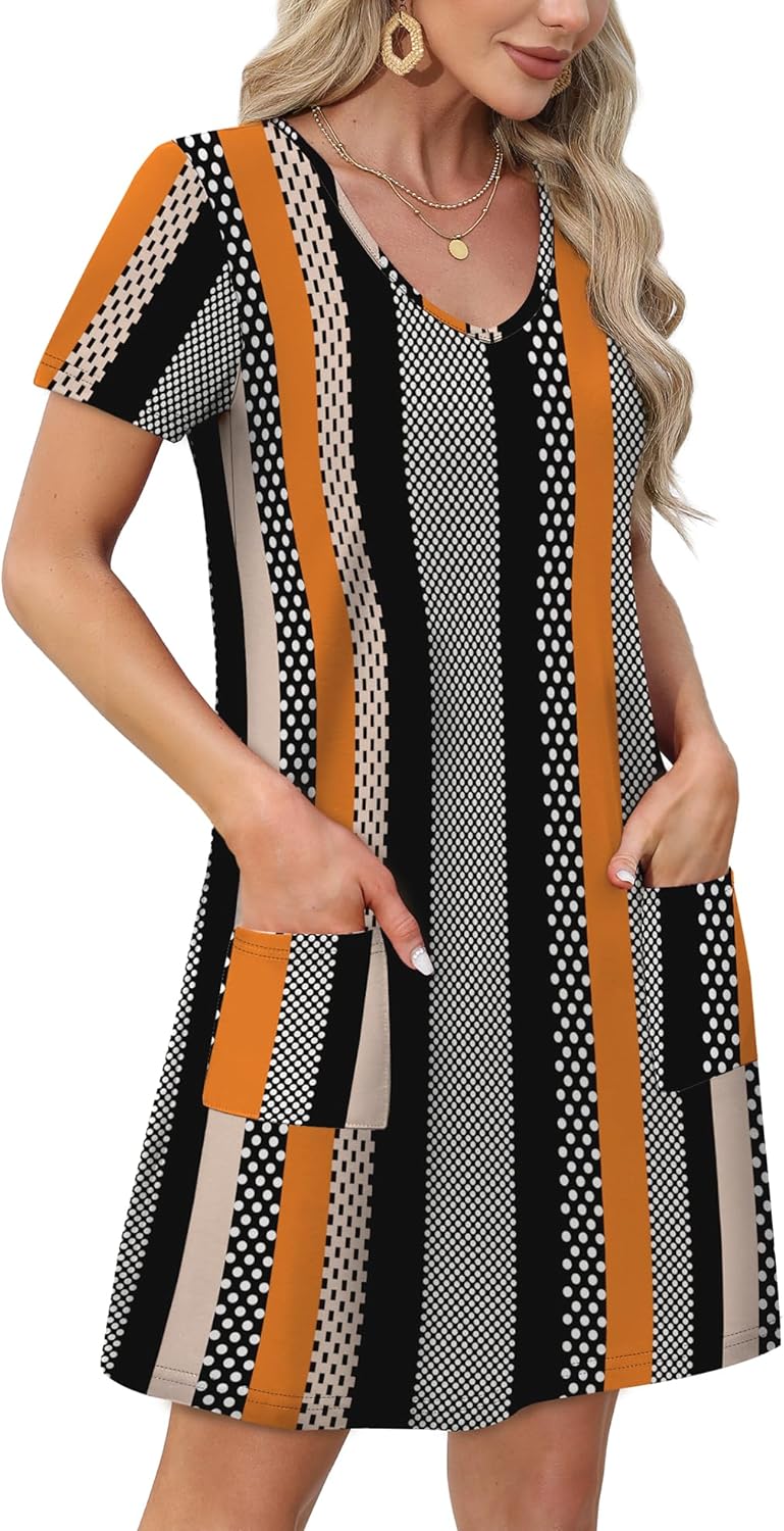 OFEEFAN Summer Dresses for Women 2025 Loose V Neck Short Sleeve Casual T Shirt Dress Sundresses Swimsuit Coverup with Pockets