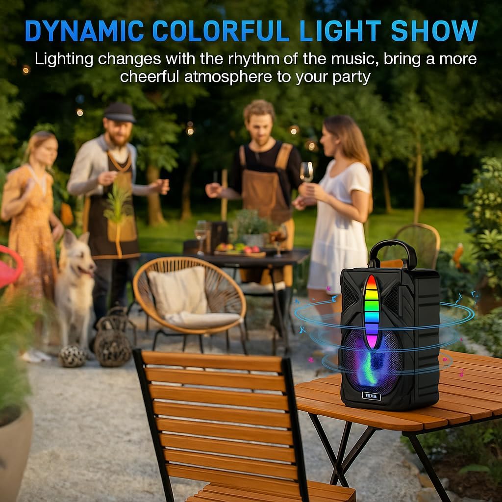 [High-Power Stereo Sound] Enjoy the amazing music scene in 360 degrees and experience unparalleled sound quality. Even at high volume, the sound remains distortion-free — suitable for parties, home entertainment, and outdoor events