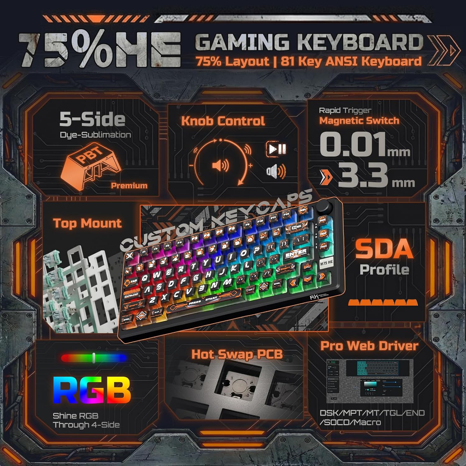 Step into the future of competitive gaming with the RK HE, a 75 percent gaming keyboard engineered to dominate. It’s a precision instrument where revolutionary Hall Effect technology meets relentless speed and deep personalization, redefining what a wired keyboard can do.