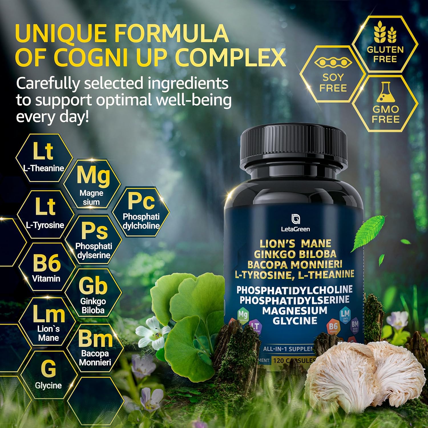 Carefully Selected Ingredients: Our formula combines nine essential components, including Lion’s Mane, Ginkgo Biloba, Bacopa Monnieri, L-Tyrosine, L-Theanine, Phosphatidylcholine, Phosphatidylserine, Magnesium, Glycine, and Vitamin B6, in a convenient capsule form.