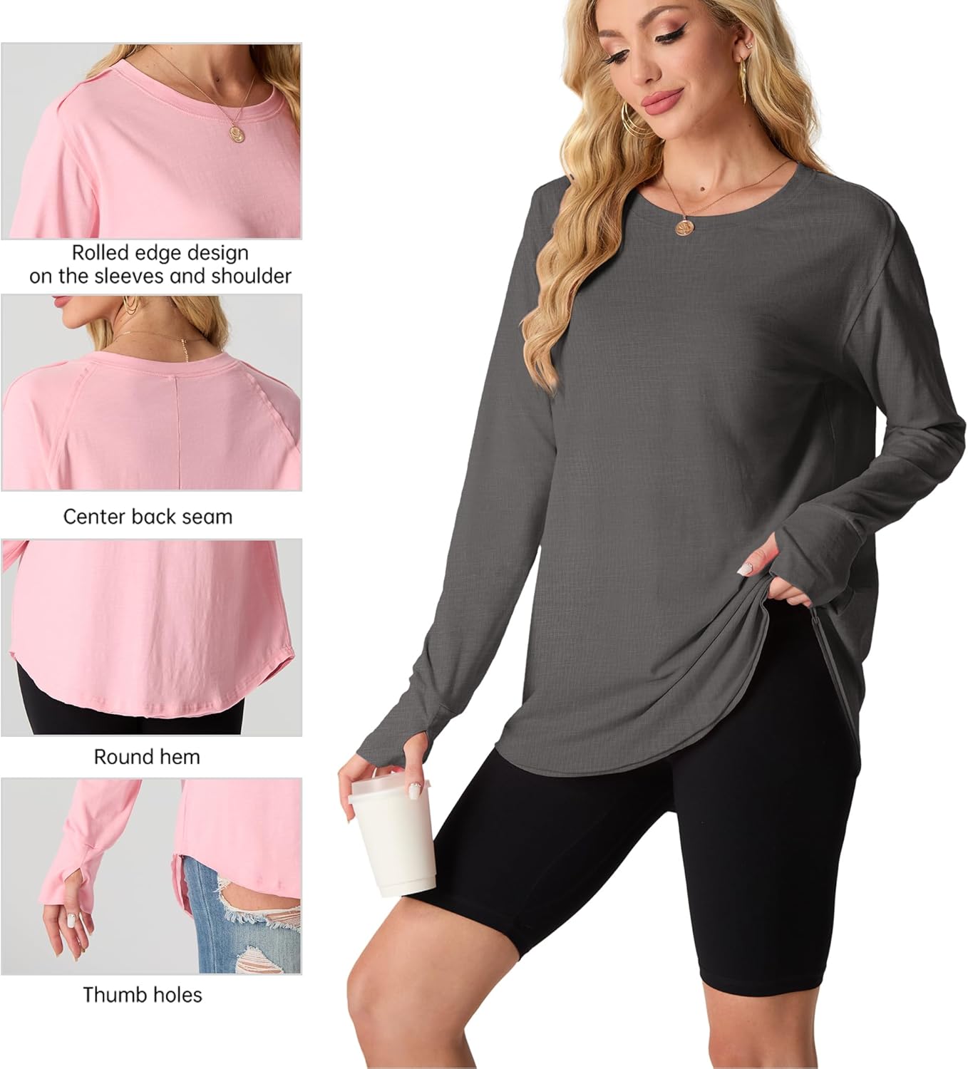 The unique features of these Mintreus tops set them apart from ordinary shirts. The round hem adds a flattering touch to your silhouette, while the thumb holes provide extra warmth and a modern look. The rolled edge design on the sleeves and shoulder, along with the center back seam, adds a stylish element that makes these tops a standout piece in your fall wardrobe. The crew neck design is classic and versatile, making these tops suitable for various occasions.