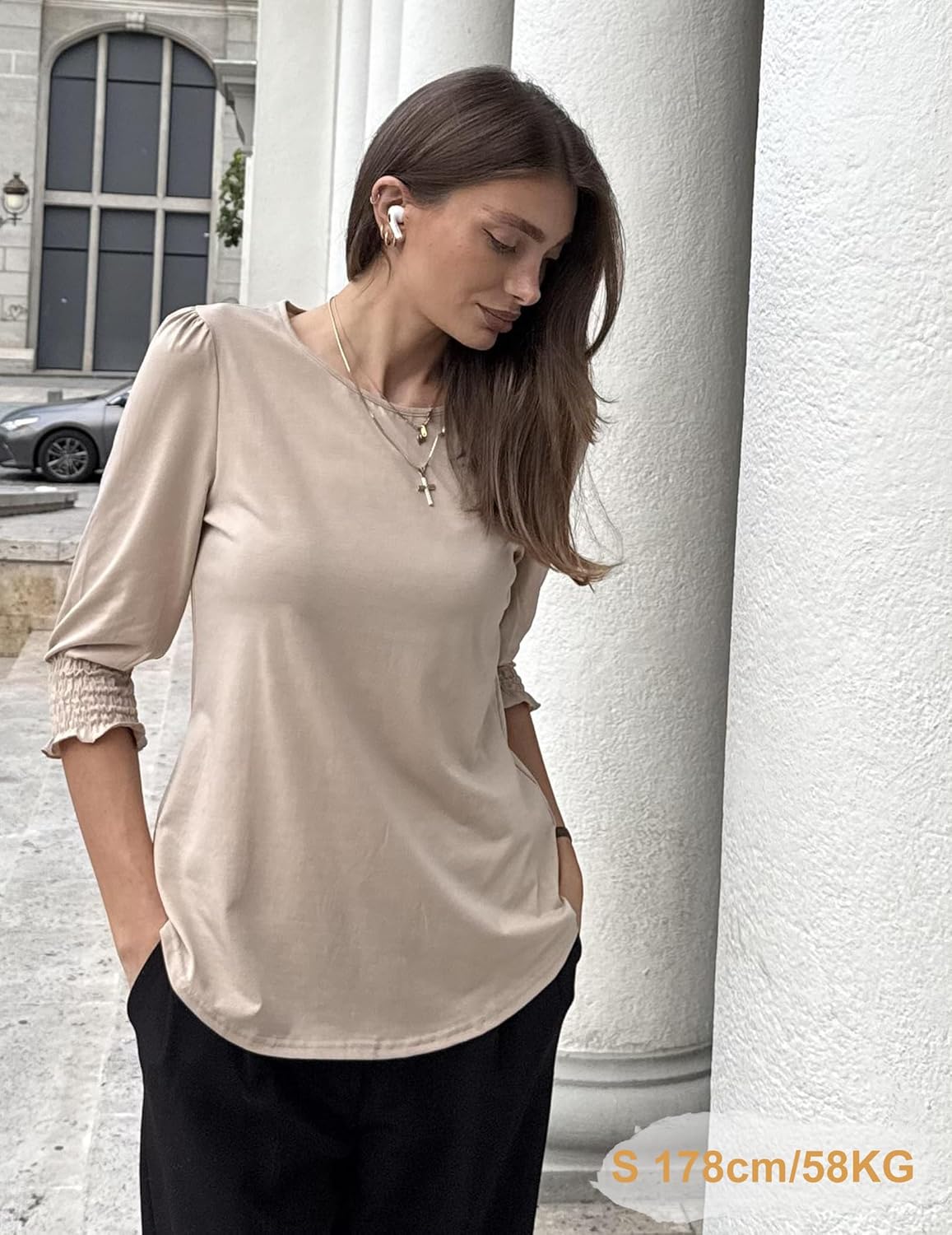 3/4 length sleeve womens t shirts 3/4 sleeve blouses for women 3/4 sleeve tops for women 3/4 sleeve work tops for women business casual boho tops 3/4 sleeve